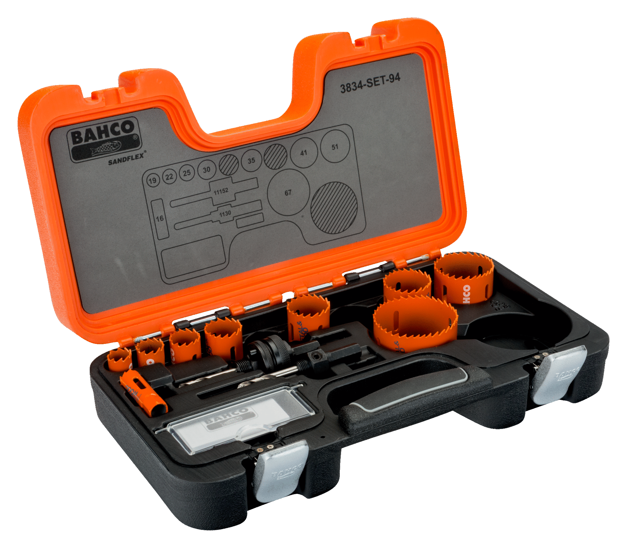 • Σετ διμεταλλικών ποτηροτρύπανων Sandflex® που περιλαμβάνουν τα συνήθως χρησιμοποιούμενα μεγέθη στη βιομηχανία και στις εγκαταστάσεις ειδών υγιεινής και ηλεκτρικών ειδών.