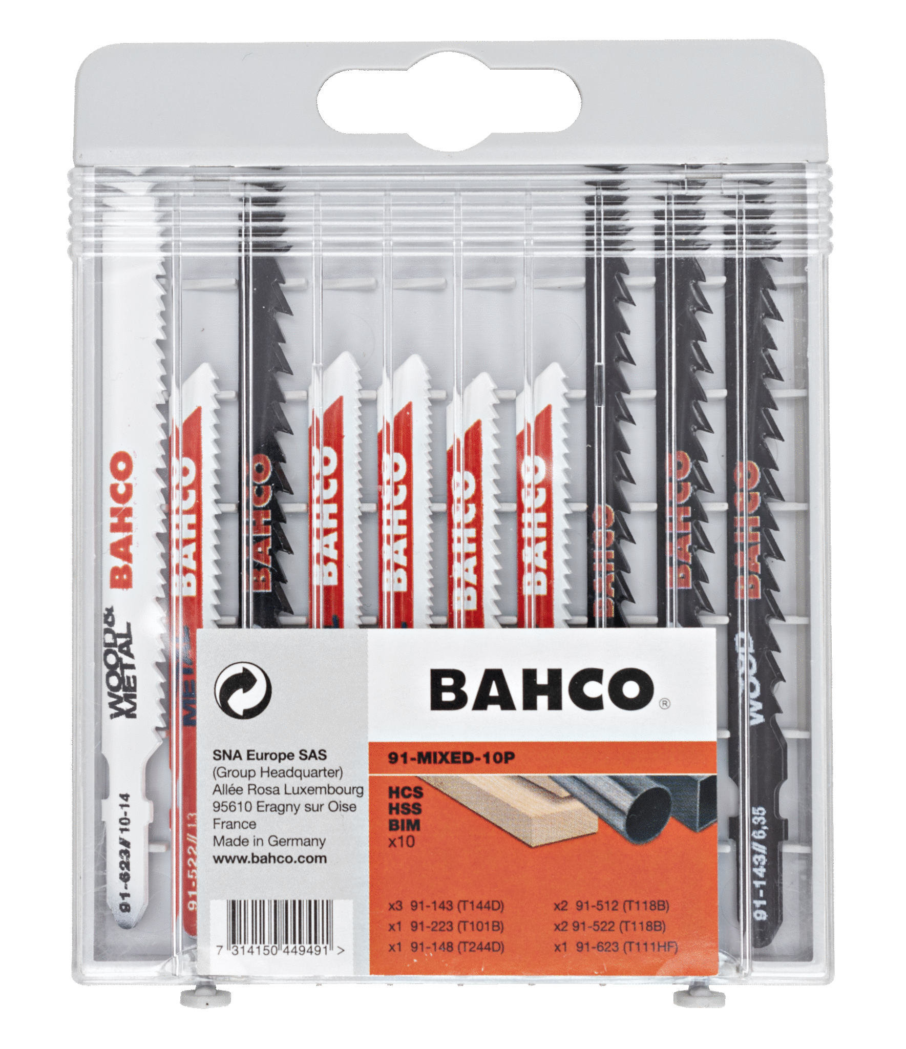 • Μικτό σετ 10 λεπίδων για τους περισσότερους τύπους εργασιών κοπής ξύλου και μετάλλου