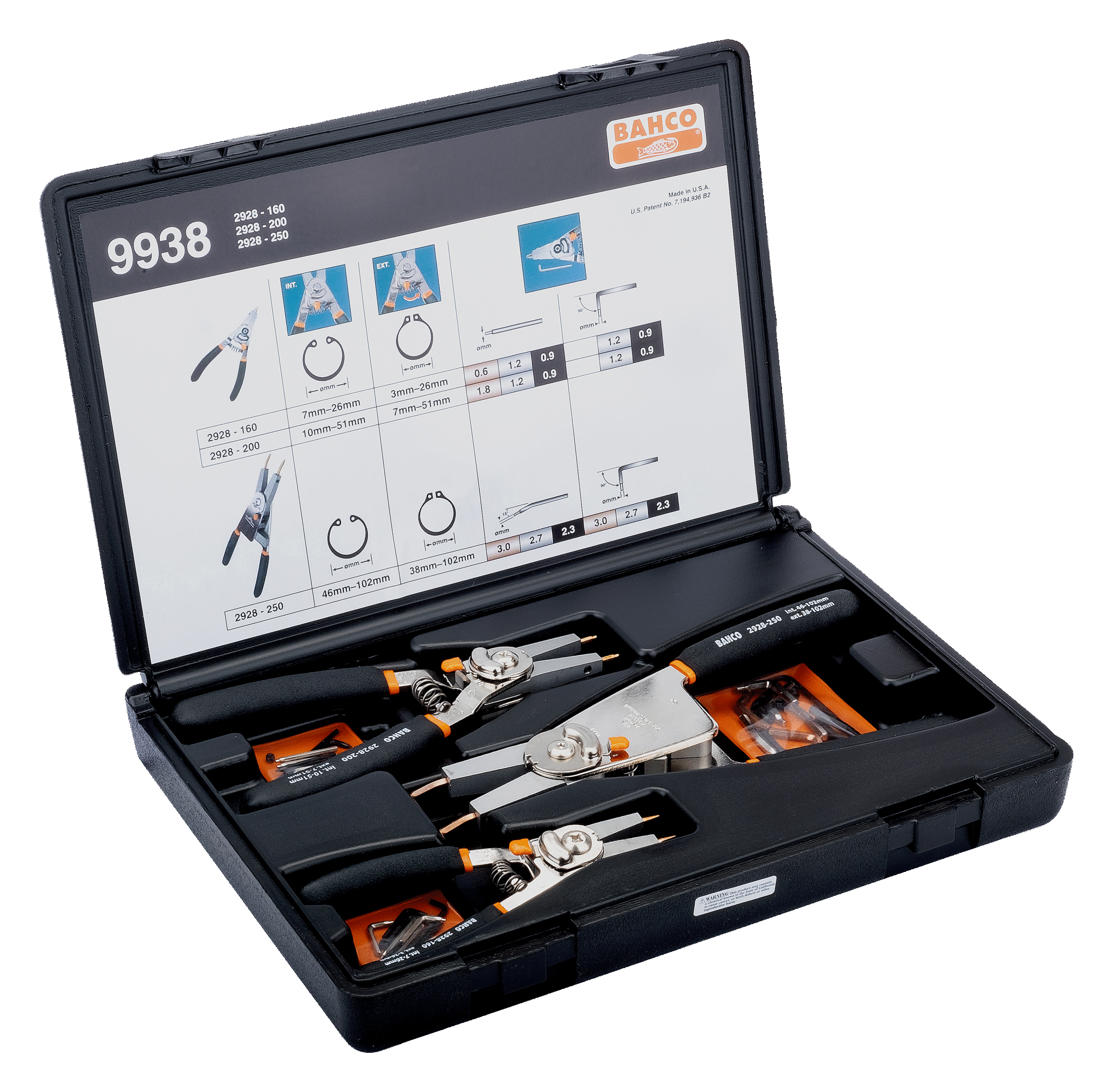 - Συλλογή από τσιμπίδια ασφαλειών για εσωτερικές και εξωτερικές ασφάλειες σειράς 2928: 160 mm, 200 mm και 250 mm