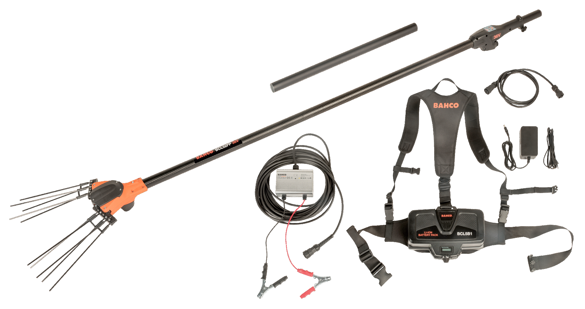 • BCL5B1PACK: Μπαταρία ιόντων λιθίου 720 Wh (20 Ah) για 5 – 6 ώρες χρόνο λειτουργίας ανάλογα με τη χρήση, με φορτιστή BCL5C1, καλώδιο BCL5B101 και καλωδίωση BCL5H