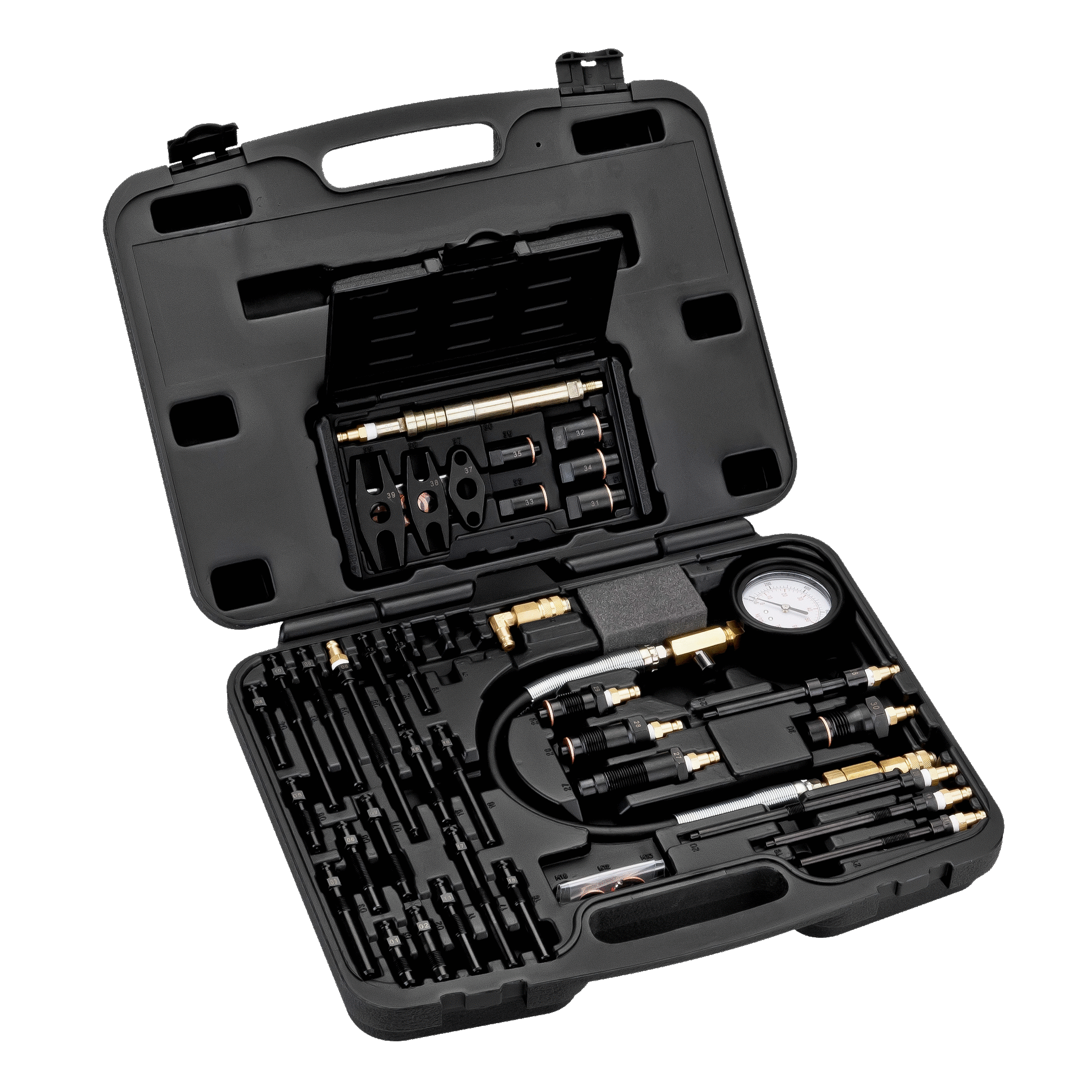 • Διαθέτει τυλιγμένο εύκαμπτο σωλήνα από λάστιχο μεγάλου διαμετρήματος 60 mm με εύρος λειτουργίας 0 – 69 BAR/ 0-1000 psi με ορθογώνια σύνδεση και ευρεία γκάμα ανταπτόρων μπουζί προθέρμανσης και μπεκ σε εφαρμογή αρπάγης και σφιγκτήρα