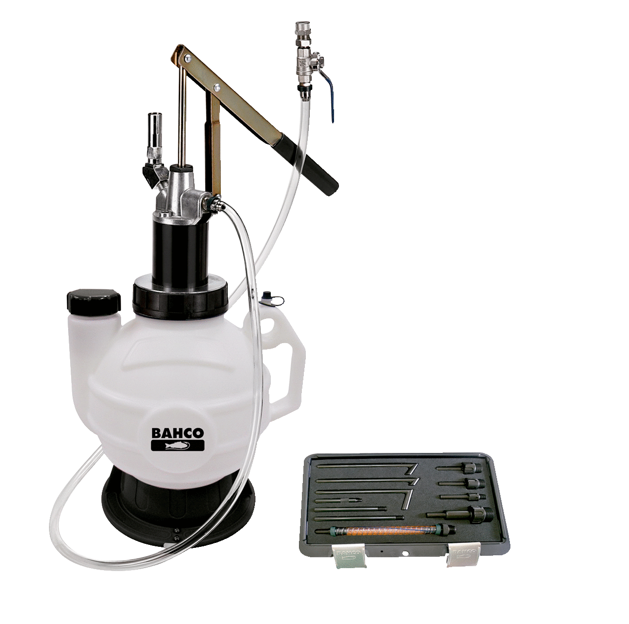 • δεξαμενή 8 λίτρων από ΡΡ με συσκευή άντλησης και εύκαμπτο σωλήνα