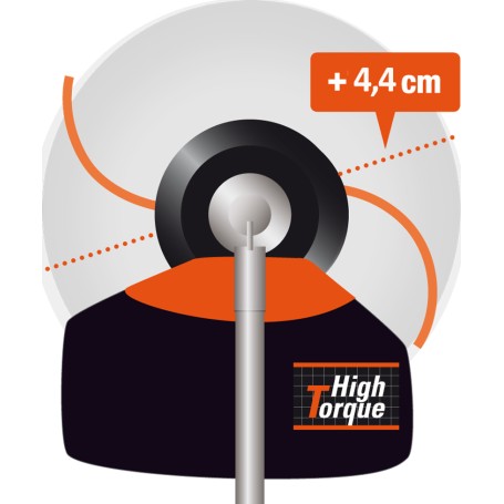 • Το νέο σύστημα της γωνιακής μετάδοσης High Torque εξασφαλίζει 50% μεγαλύτερη ισχύ κοπής η οποία φθάνει έως και 3.75 HP.